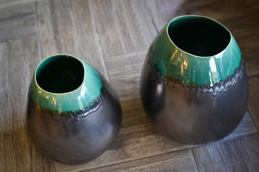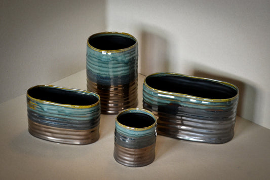 Grey & Turquoise Porcelain Jars - 2 Shapes
